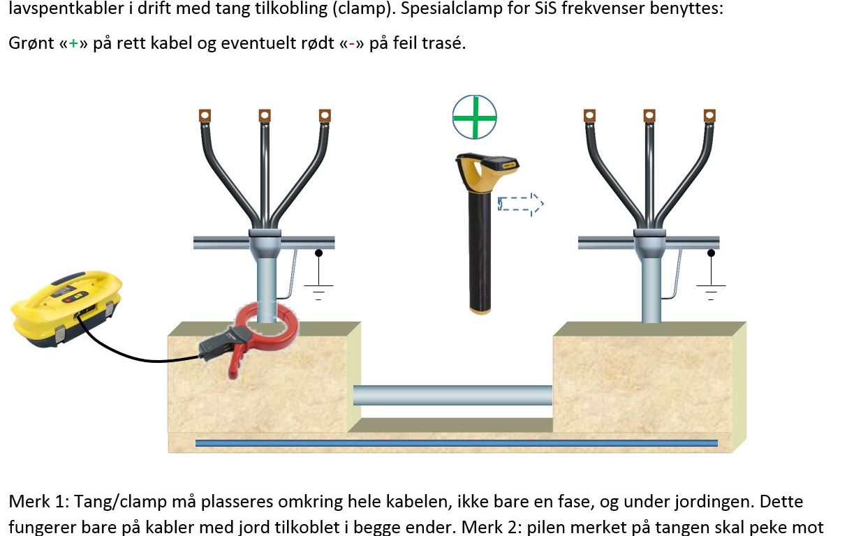 Disse to tilfellene viser klart fordelen med SiS metoden som muliggjør sikker kabelidentifikasjon og peiling av korrekt trase selv om signaler smitter over og selv om det er full spenning på kabelen der søkes. SiS clampen muliggjør induktiv overføring av SiS signalet inn i spenningsatte kabler selv med ekstrem lave frekvenser !