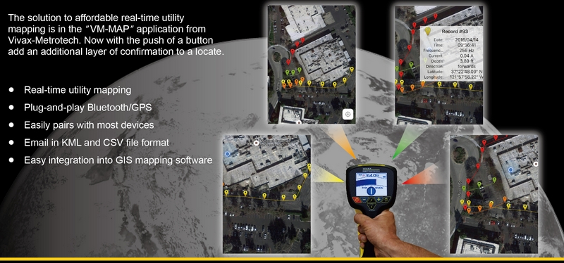 VMMap er kompatibel med Vivax-Metrotech søkere (www.vivax-metrotech.com). Den kan lagre og vise informasjon under påvisning av kabler og rør i sanntid.