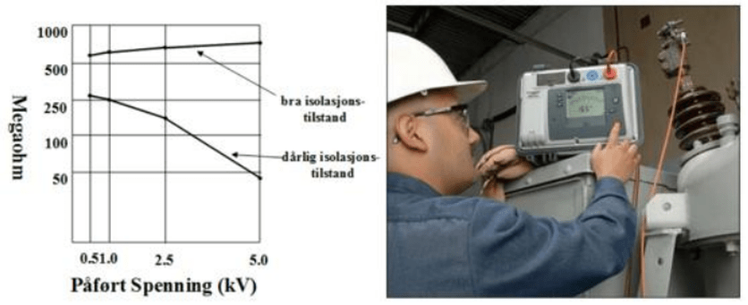 Fuktighet og skitt i isolasjonen kan ofte lett avsløres ved lavere spenninger enn driftsspenningsnivå. Lokale svakheter i isolasjonen derimot trenger høyere spenninger for å trigges. Her har SV testen gode muligheter til å avsløre dette ved at man observerer en negativ trend i avleste verdier. Testen inkluderer to eller flere spenninger i trinn (f.eks. 500 V og 1 kV). Testspenningen forblir konstant mellom trinnene på 60 sekunder. Les av isolasjonsmotstanden ved hvert nivå. Enhver uvanlig resistanse redusjon er en indikasjon på en begynnende eller eksisterende svakhet, som sprekker eller hull, i isolasjonen