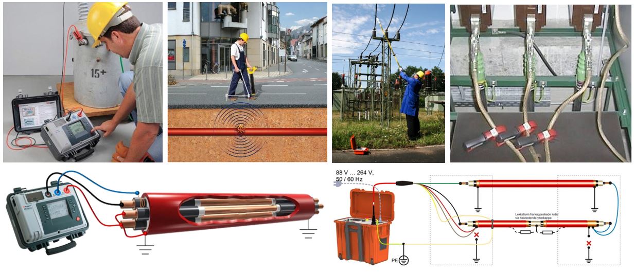 - kappefeilsøking med skrittspenningsmetoder og kappemålebro for meter til feil i rør og bakke