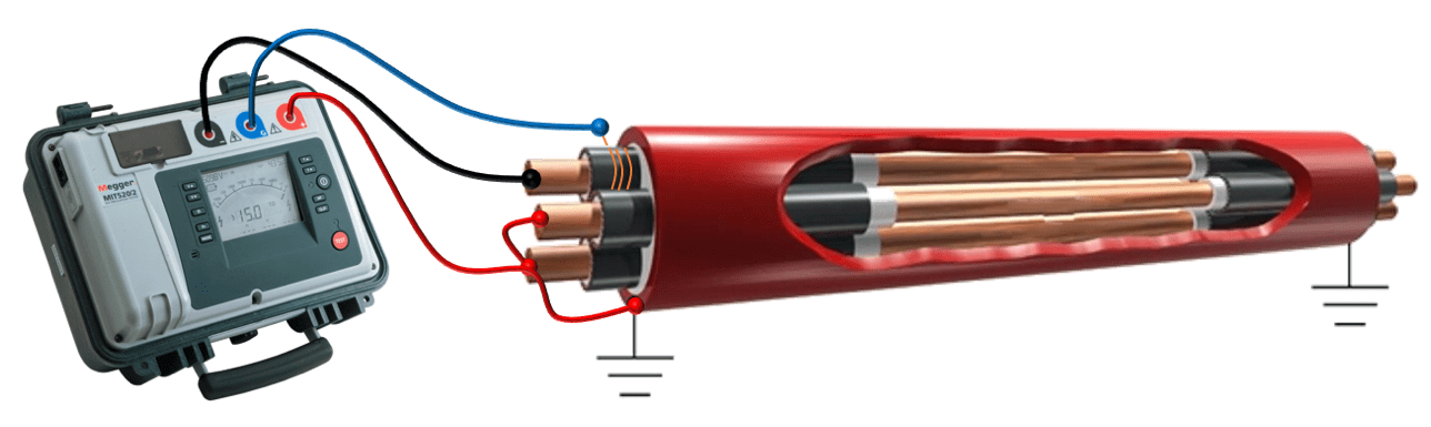 På en kabel tester vi normalt mellom skjerm og leder og urenheter og fuktighet på isolasjonen derimellom gir lett uønskede krypstrømmer der gir unøyaktighet i måleresulatet.