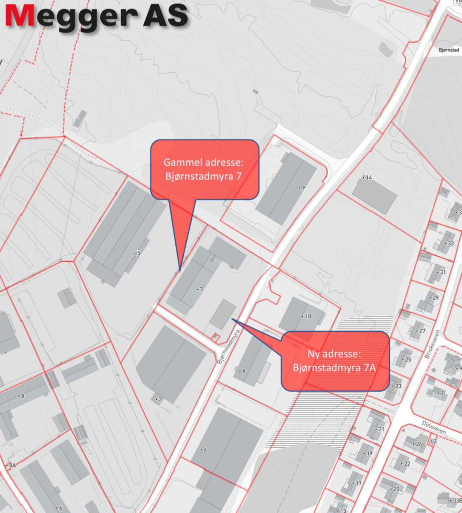Megger AS flyttet inn i nye lokaler 1. november 2019. Dette er et nytt forretningsbygg ført opp ved siden av Megger sin gamle adresse, Bjørnstadmyra 7 på Grålum.