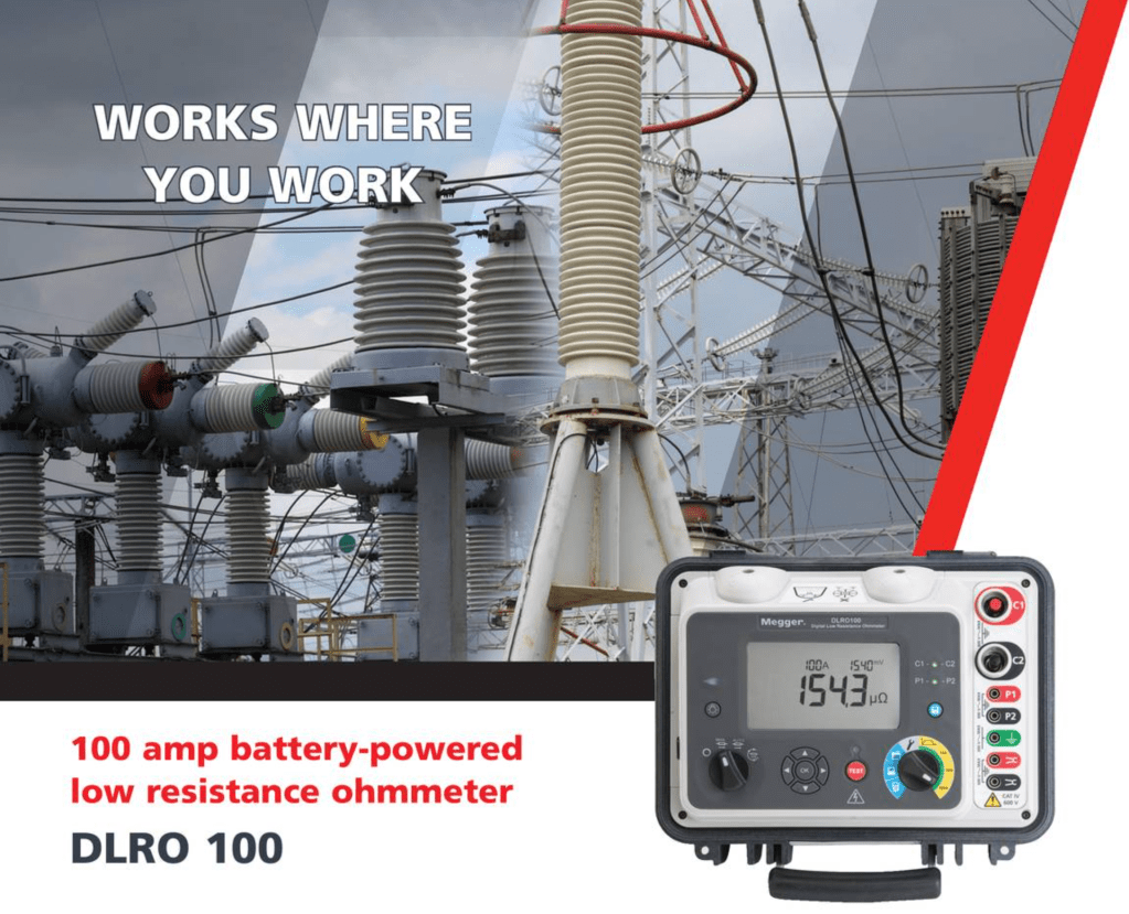 Megger DLRO100XB lavohm/mikroohm meter er spesielt designet for energibransjen og testing av GIS anlegg, effektbrytere, skillebrytere, jordsluttere, samleskinner, kabel skjøter, lynavledere og kabling eller kabelresistanse.