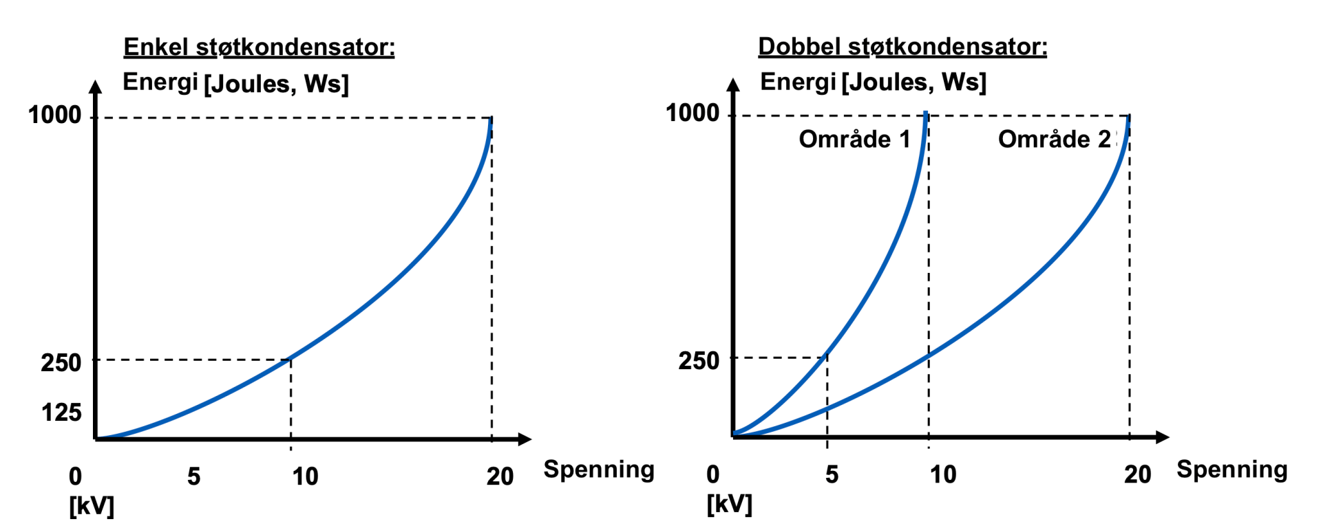 Når en støtgenerator benytter 50% av maks spenning er det kun 25% av maks energi ut med pulsen.