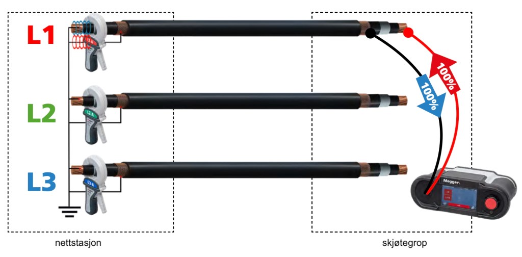 - Trefase kabel- og faseidentifikasjon for enfase kabler i ett trinn (uten å koble til på nytt)