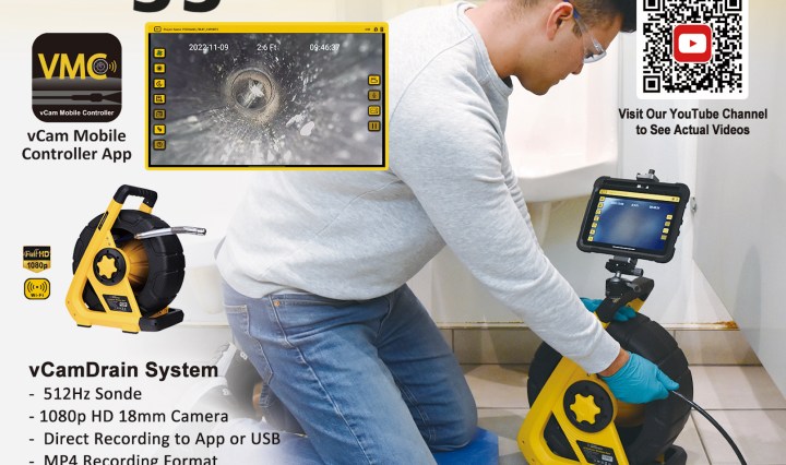 Nye vCamDrain inspeksjonskamera med HD, WiFi og gratis APP vCamDrain har et WiFi-inspeksjonskamerasystem som styres av vCam Mobile Controller (VMC)-appen. Når den er koblet til via Wi-Fi kontrollerer VMC-appen kameralysene, tilbakestilling av avstandteller, sonde og tekstskriver. Appen viser stakefjærsystemets WiFi-status, … Fortsett å les Ny modell vCamDrain WiFi Inspeksjonskamerasystem med 20 eller 30m lengde og D18-HD kamerahode.